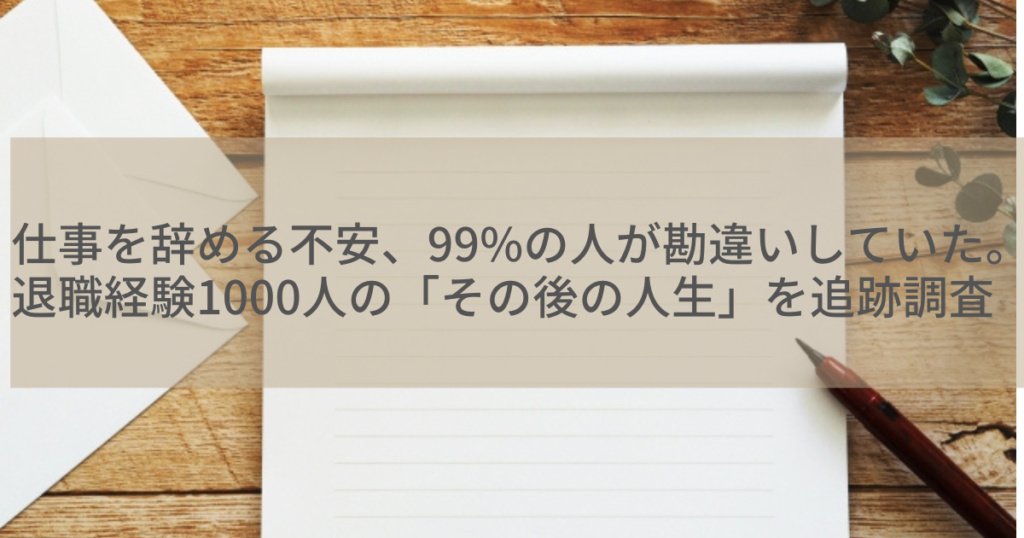 仕事を辞める不安、99%の人が勘違いしていた。退職経験1000人の「その後の人生」を追跡調査