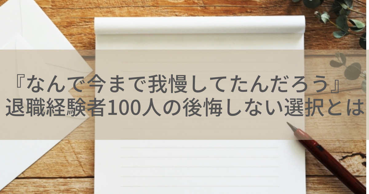 『なんで今まで我慢してたんだろう』退職経験者100人の後悔しない選択とは