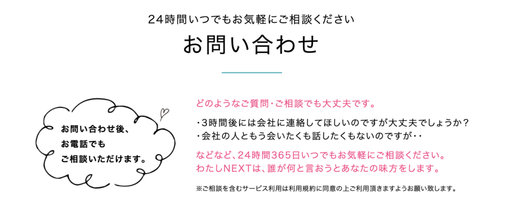 わたしNEXTでは、退職手続きだけでなく、退職後の転職活動までサポートしています。また、利用者の心理的負担を軽減するためのカウンセリングサービスも提供しています。これにより、退職を考えている方が安心して次のステップに進むことができます。さらに、わたしNEXTは24時間対応のサポートを提供しており、いつでも相談できる環境が整っています。