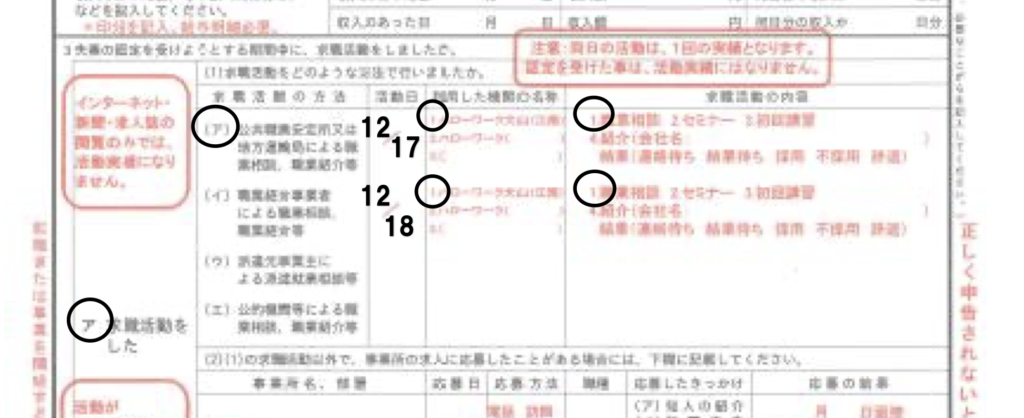 A:2週間ごとの認定日までに、以下のような求職活動が必要です。